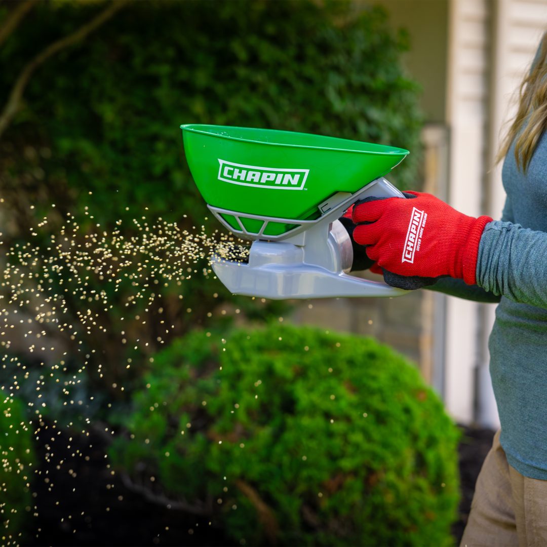 Chapin’s 8706G hand crank turf spreader is perfect for small plots of seed and fertilizer applications. Use it for touch ups or around small areas where a larger spreader can’t go.